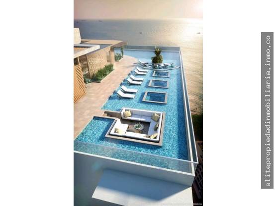 Zonas comunes: piscina infinita, terraza con fogata, estar, coworking, club de playa, sala de television, jacuzzis, gimnasio, yoga, piscina niños, turco, sauna, lavanderia, bar, etc